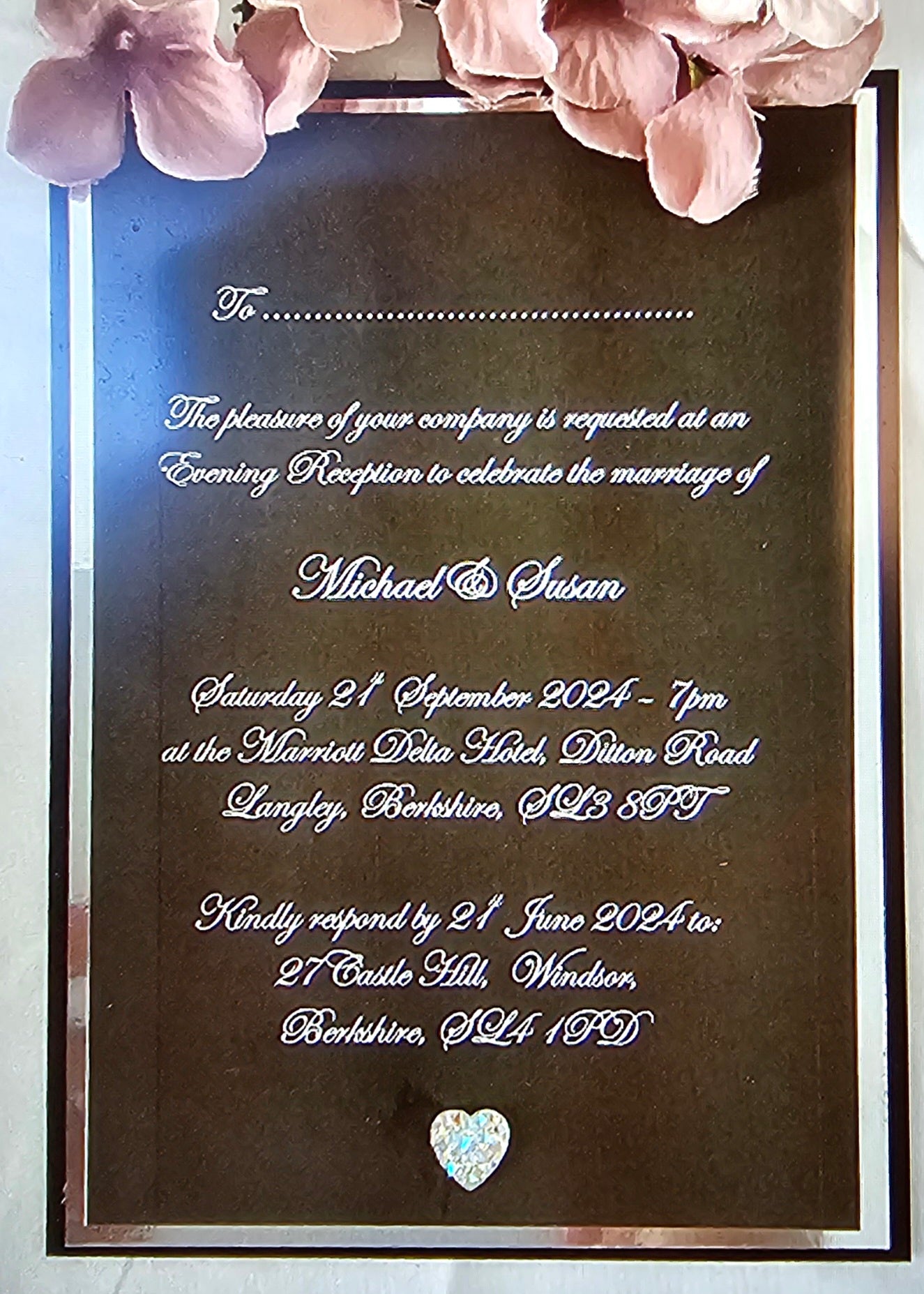 Click the image on the left to enlarge it and please remember when you view your Cart at checkout there is a box called ‘Order special instructions’ for you to add any personalisation i.e. the details you would like printed on your invitations such as Names; Dates; Times; Don’t be put off if the information isn’t to hand, you can email me once you’ve placed your order to amandastroudcreations@gmail.com but I will need it before I can make your order.